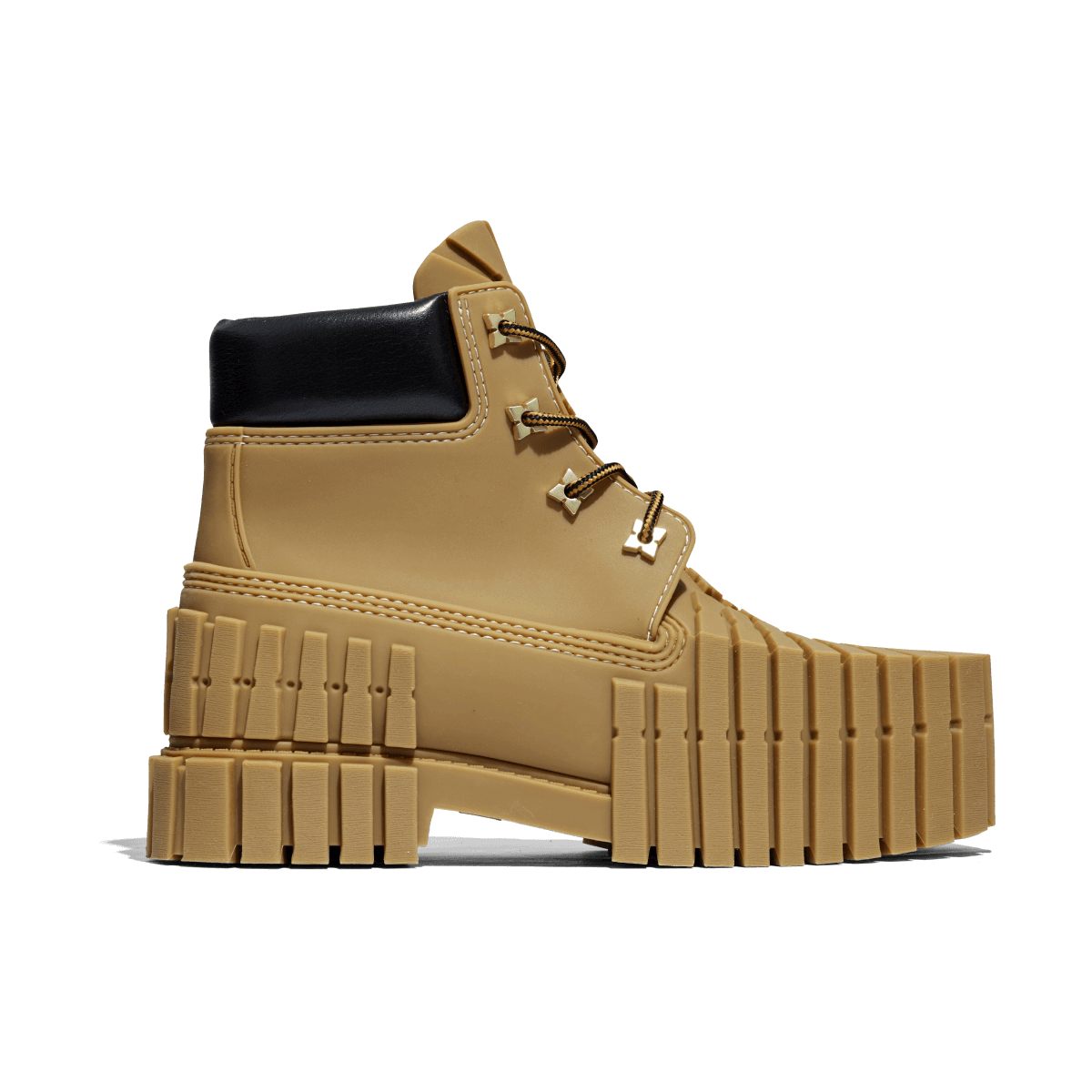 The 2x4s are all sole. The boot tread has been extruded up through the body of the boot, and the upper is made of gum rubber sole material. Built to stomp some curbs.