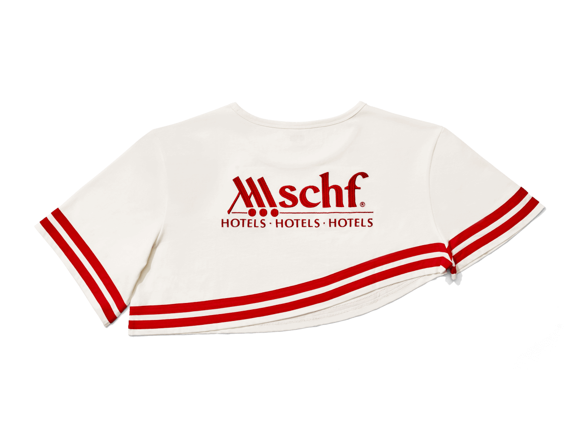 Wavy-edged crop top from the MSCHF Hotels capsule. Materials/Details: 100% Cotton