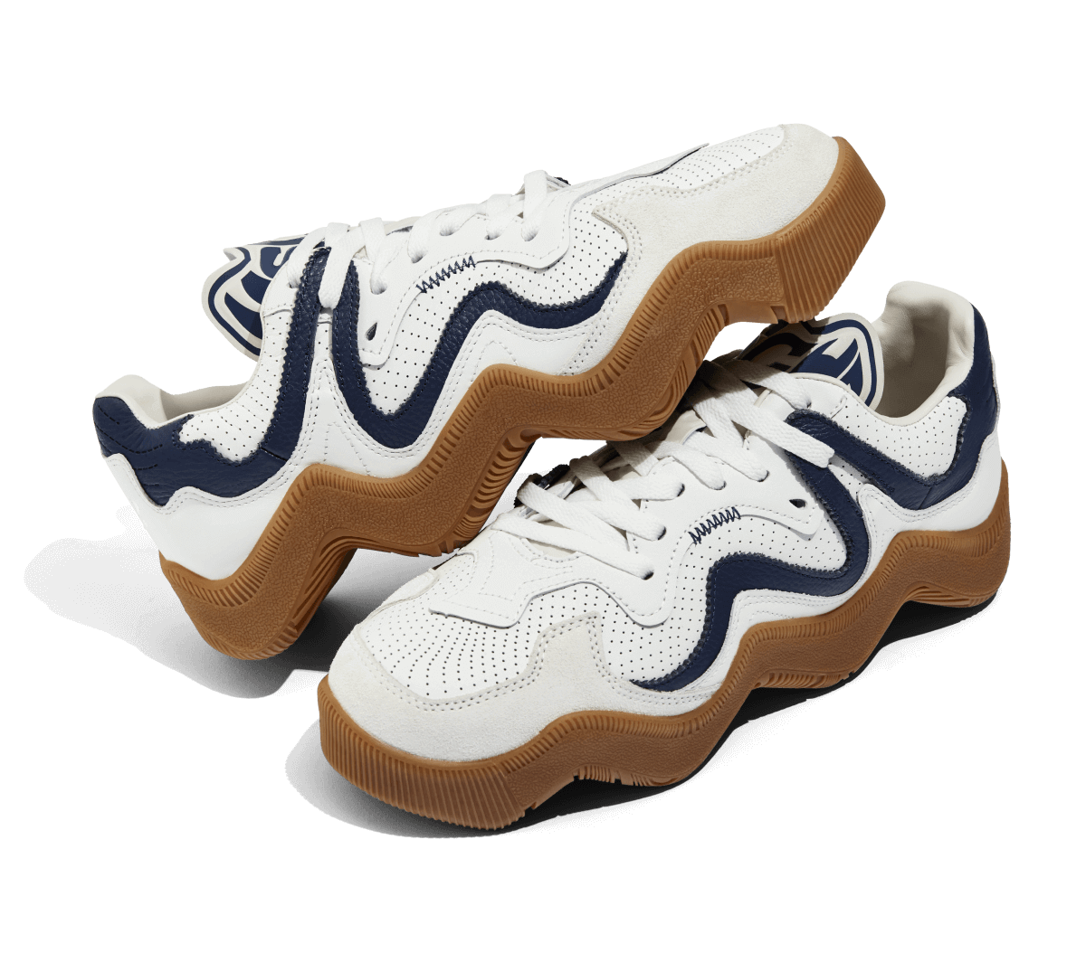 Warning: moderately wavy. A classic soccer shoe warped for the Wavy Generation. Let’s get liquid, with our assets, our diets, and our shoes. It’s the 21st century, the water’s rising, and the only solution is to get wavy. Materials/details: Leather and suede upper, wavy sole and warped tread, padded collar, molded textured insole, fits true to size.